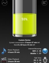При обращении к Battery HD Pro в нижней части батареи отображается информация о различных емкостях и цветах. Эти данные касаются действий, которые можно выполнять на устройстве, и соответствующего оставшегося времени, которые часто выполняются пользователем. Эти действия также могут быть изменены по мере необходимости, и приложение предоставляет настраиваемый список.