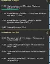 - Просмотр расписания телепередач на несколько дней вперёд.