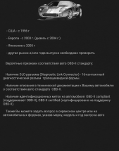 - Поддержка 95% автомобилей с OBD2-совместимыми системами (с 1996 года выпуска)