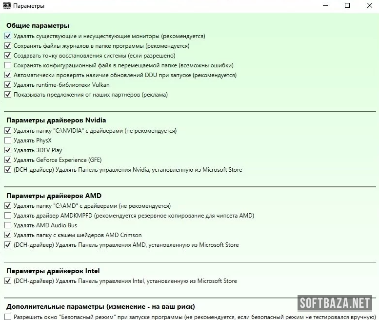 - Полное удаление драйверов NVIDIA, AMD и Intel