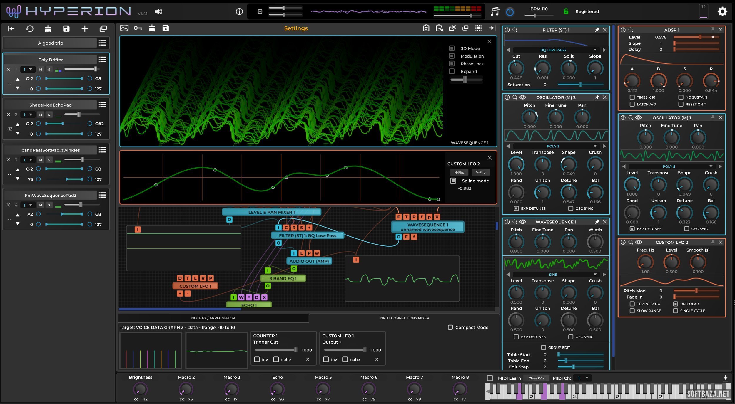 Wavesequencer Hyperion — это инновационный VST-синтезатор, сочетающий в себе ретро-эстетику звучания 80-х с современными технологиями звукового дизайна. Этот модульный инструмент предлагает уникальный подход к синтезу, вдохновленный легендарными композиторами эпохи — Вангелисом, Жан-Мишелем Жарром и Брайаном Ино, но реализованный с использованием передовых цифровых технологий.Архитектура и модульная система: