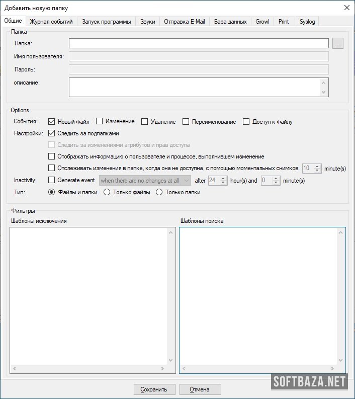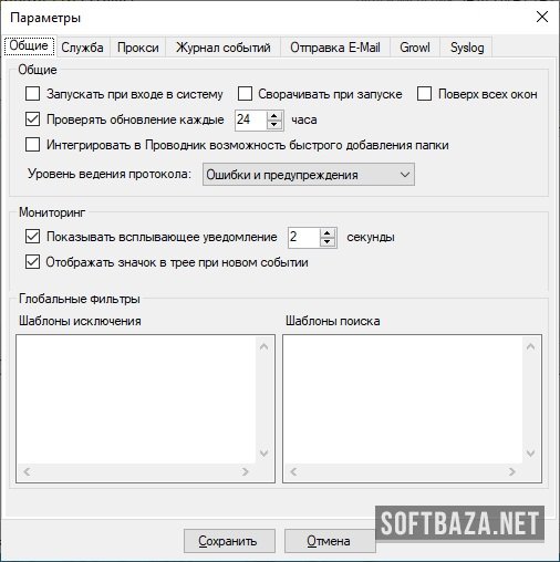 - мониторинг любых папок на компьютере и сетевых дисках;