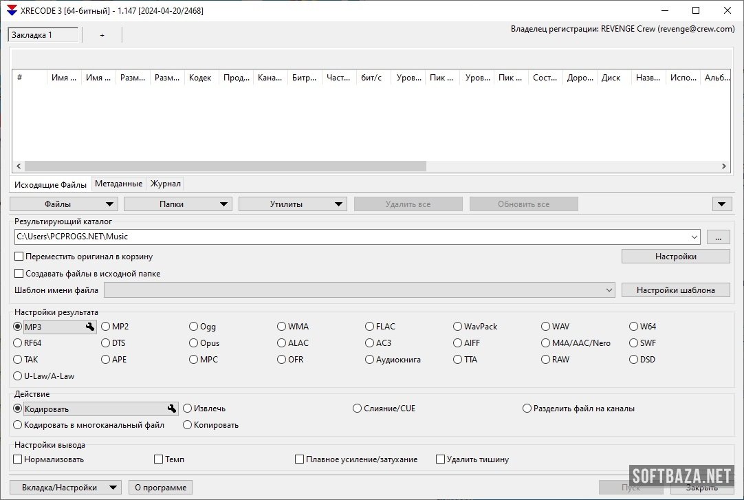 - Инструменты для тонкой настройки звука: Функции нормализации громкости, объединения файлов (идеально для аудиокниг и концертных записей) и массового переименования делают XRecode универсальным решением.