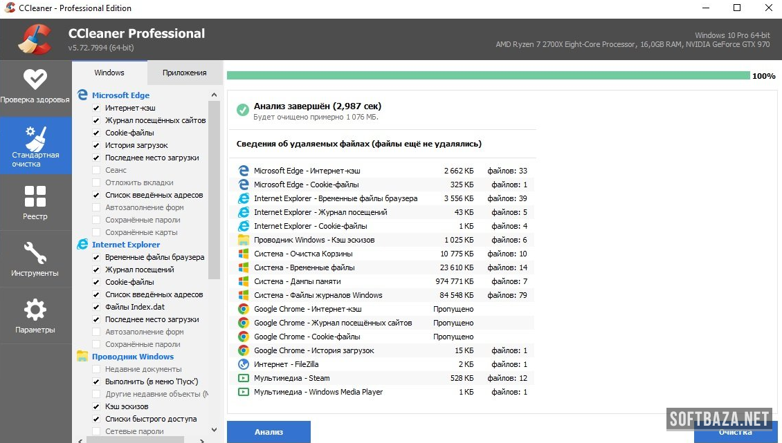 CCleaner Professional — это комплексное решение для оптимизации работы компьютера, предлагающее набор инструментов для очистки системы, исправления ошибок и повышения производительности. Программа заслужила доверие миллионов пользователей благодаря эффективности и продуманному интерфейсу.Модуль выполняет глубокий анализ системы на наличие временных файлов, кеша браузеров, журналов и других неиспользуемых данных. Он поддерживает работу с популярными браузерами (Chrome, Firefox, Edge, Opera), системными компонентами и более чем 100 приложениями. Регулярное использование позволяет освобождать гигабайты дискового пространства и устранять потенциальные источники замедления работы системы.