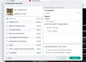Программа автоматически извлекает и сохраняет все метаданные (теги) и обложки альбомов, что помогает поддерживать вашу медиатеку в идеальном порядке. Функция пакетной загрузки позволяет автоматически скачивать огромные коллекции музыки — целые плейлисты или подборки — всего в несколько кликов.