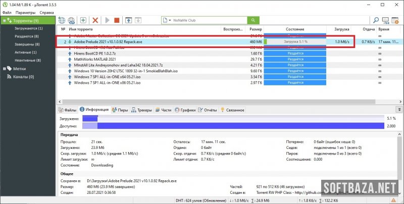 - Найдите любую торрент раздачу, мы возьмём Adobe Prelude 2021;