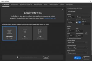 Данный редактор имеет идентичный Фотошопу интерфейс, а также расширенный набор доступных инструментов. В главном окне (при создании нового проекта) имеется возможность выбора готовых предустановок для проекта под веб-страницы, приложения, мобильные устройства, полиграфическую продукцию и не только.