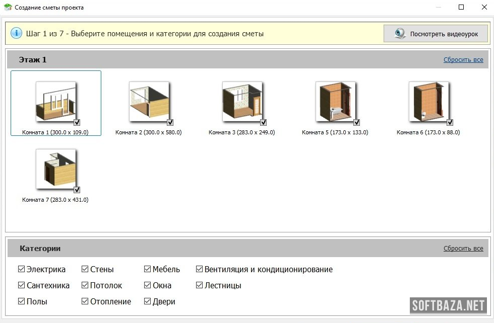 - Настройка материалов — выбор отделки стен, полов, текстиля