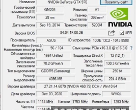 - Сведения о поддержке технологий (DirectX, Vulkan, OpenGL)