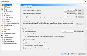 - Контроль раздач: установка ограничений на скорость загрузки и отдачи;