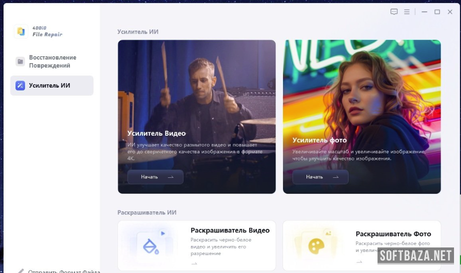 - Пакетная обработка, позволяющая восстанавливать несколько файлов одновременно.
