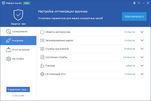 В разделе ускорение доступен простой инструментарий для настройки операционной системы. Программа поможет в отключении неиспользуемых служб приложений и Windows, оптимизировать параметры сети, настроить объекты автозагрузки и запланированные задачи. Данный инструментарий направлен на повышение общей производительности системы и компьютера.