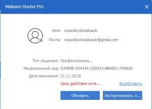- Активация Malware Hunter профессиональной версии в комплекте.