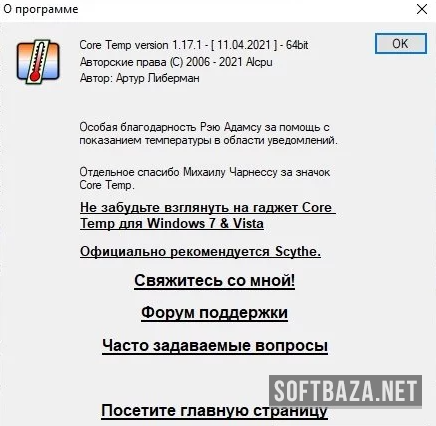 Core Temp 1.19.5.69 для Windows 11, 10, 8, 7 на русском
