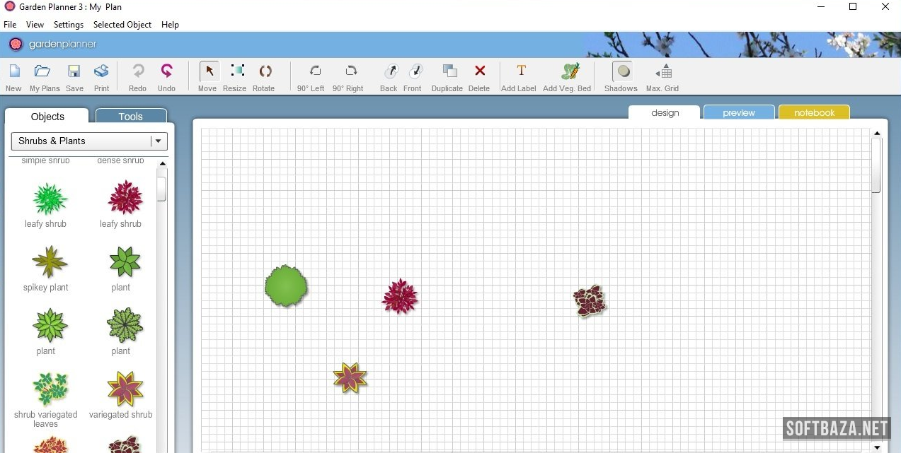 Garden Planner — это удобное и наглядное приложение для визуального планирования садового участка, огорода или придомовой территории. Программа позволяет создать детальный план ландшафта в 2D, расставив все необходимые элементы: от грядок и деревьев до садовых построек, дорожек и систем полива.Интерфейс программы интуитивно понятен и не требует специальных навыков в дизайне. Вы просто перетаскиваете объекты из обширной библиотеки на план участка, масштабируете их и располагаете в нужном порядке. Это помогает наглядно оценить будущую композицию, избежать ошибок в посадках и рационально использовать пространство.