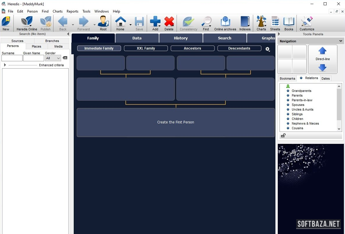 Heredis — это профессиональное программное обеспечение для генеалогических исследований и создания детализированных генеалогических древ. Программа сочетает мощные возможности сбора и анализа данных с интуитивно понятным интерфейсом, что делает её идеальным инструментом как для начинающих исследователей истории семьи, так и для опытных генеалогов.- Профессиональное создание и визуализация генеалогических древ с поддержкой сложных родственных связей и множеством форматов отчетов.