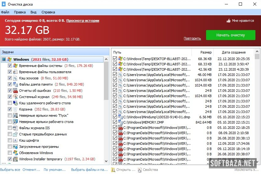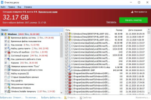 - Удаление временных системных данных и кэша веб-обозревателей