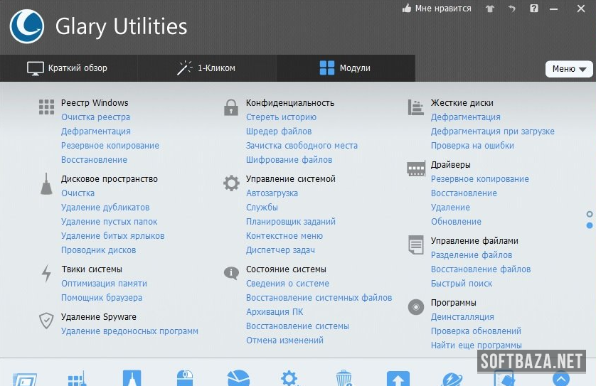 Расширенный функционал Glary Utilities: