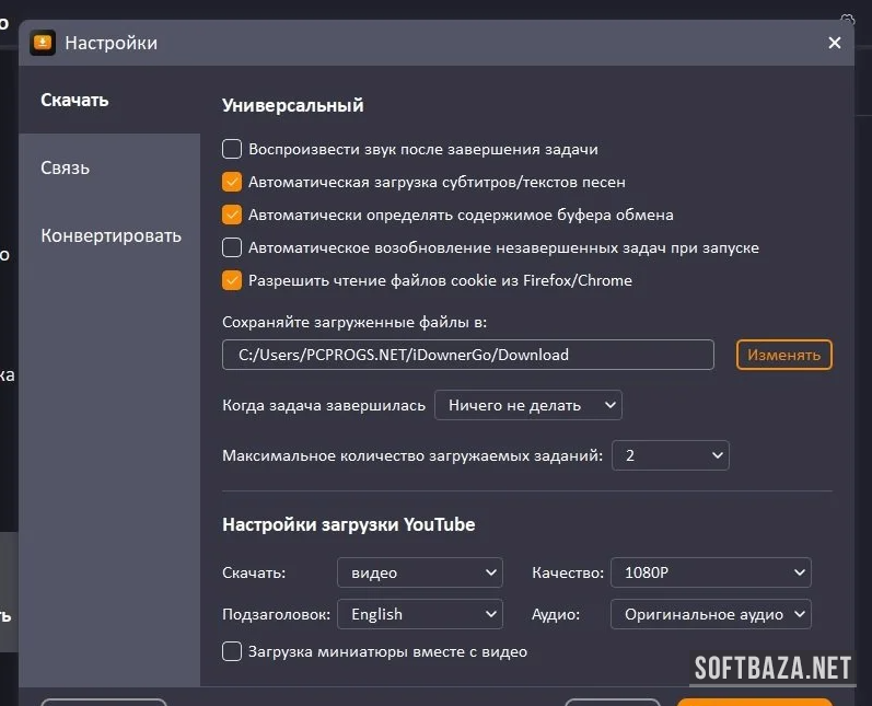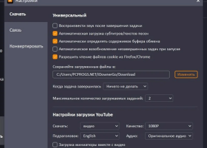 - Пакетный режим скачивания для массовой загрузки видео, включая целые плейлисты