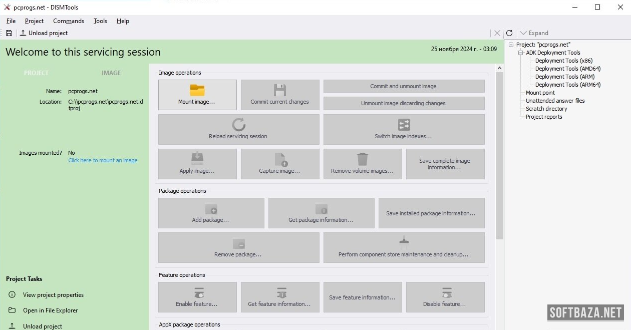 DISMTools представляет собой специализированную утилиту для комплексного управления системными образами операционной системы Windows. Программа обеспечивает удобный графический интерфейс для работы с консольным инструментом DISM, применяемым для редактирования образов: интеграции обновлений, модификации параметров конфигурации, внедрения программного обеспечения и выполнения других операций по кастомизации системы.Утилита поддерживает обширный спектр операций с образами, включая добавление или деинсталляцию системных компонентов, управление драйверами оборудования, пакетами обновлений и языковой локализацией. DISMTools обеспечивает оптимизацию образов посредством устранения избыточных компонентов и минимизации их итогового размера. Программный инструментарий также включает средства диагностики, верификации целостности и устранения ошибок в критических системных файлах.