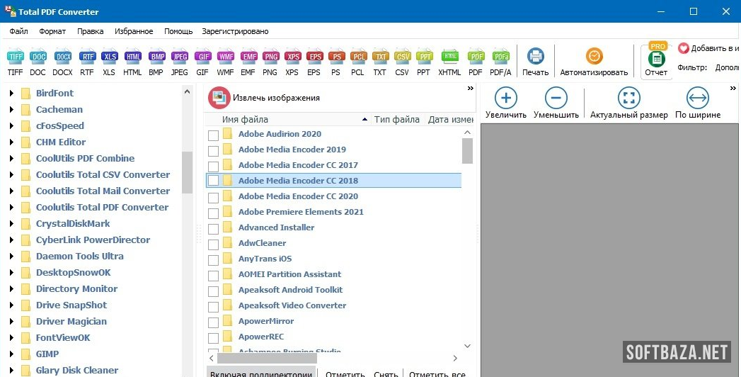 - Преобразование PDF в графические форматы PNG, JPG, GIF, TIFF, BMP и другие популярные расширения