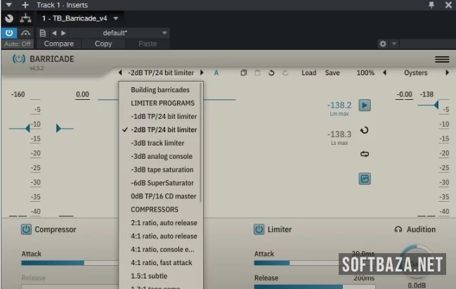Barricade 4 — профессиональный лимитер пиковых значений звуковых сигналов. Поддерживает ручную конфигурацию для создания фирменного звучания или автоматическую адаптацию параметров в зависимости от характеристик входящего сигнала. Интегрированы функции сглаживания переходов и интеллектуального шумоподавления.