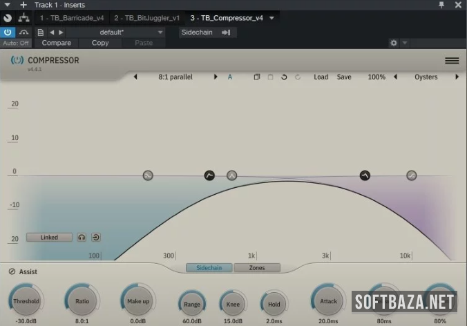 Compressor 4 — продвинутый компрессор с визуализацией динамической обработки в режиме реального времени. Отображает коэффициент усиления посредством кривых и спектральных графиков. Обеспечивает селективное сжатие по частотным диапазонам и каналам.