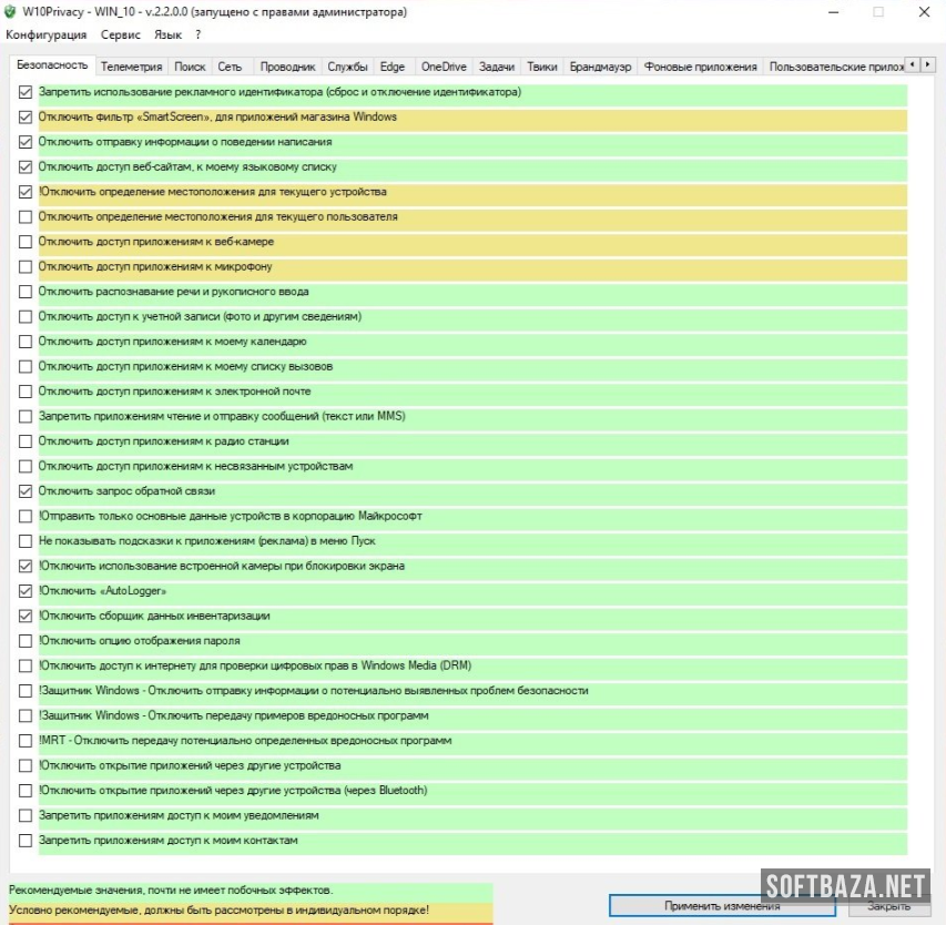 Рекомендации по эксплуатации утилиты: всегда запускайте W10Privacy с правами администратора — множество системных параметров требуют соответствующих привилегий для модификации значений. С повышенной осторожностью подходите к деактивации параметров, выделенных красным цветом в интерфейсе — они могут повлиять на базовую функциональность системы. После завершения конфигурации обязательно выполните перезагрузку компьютера для применения изменений.