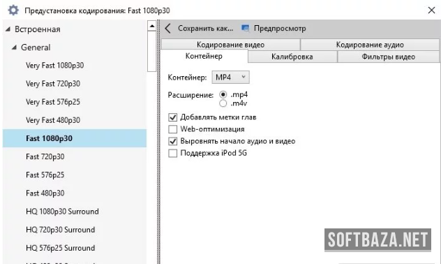 - Интеграция обработчика HandBrake для профессионального кодирования видео