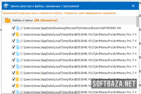 - Комплексное удаление выбранного приложения совместно с пустыми директориями и ключами реестра