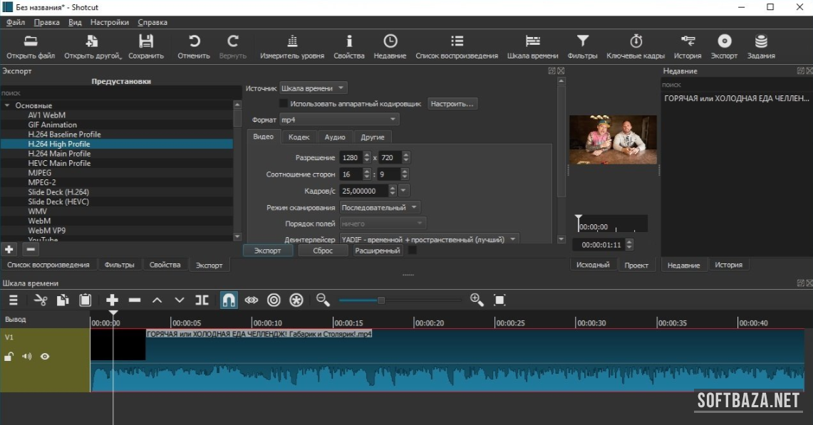 Shotcut — компактный видеоредактор для обработки роликов различных форматов. Программа предоставляет интуитивно понятный интерфейс и базовый инструментарий для работы с видеоматериалами. Обрезка роликов, работа со звуком, применение эффектов и фильтров — всё это доступно без погружения в профессиональный монтаж.Благодаря полной русскоязычной локализации освоение основных функций не займёт много времени. Встроенная база фильтров и эффектов подходит для качественной обработки небольших роликов. При кодировании настраивается целевой формат, частота кадров и разрешение итогового файла. Программа вполне справляется с задачами конвертации видео между различными форматами.