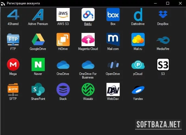 К версии 5.9 программа поддерживает более 40 облачных сервисов — от глобальных гигантов (Google Drive, OneDrive, Dropbox, iCloud) до специализированных (Wasabi, Backblaze B2, Hetzner Storage Box) и российских платформ (Яндекс.Диск, Mail.ru Cloud). Это самый широкий охват среди desktop multi-cloud менеджеров на рынке.