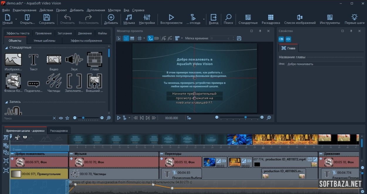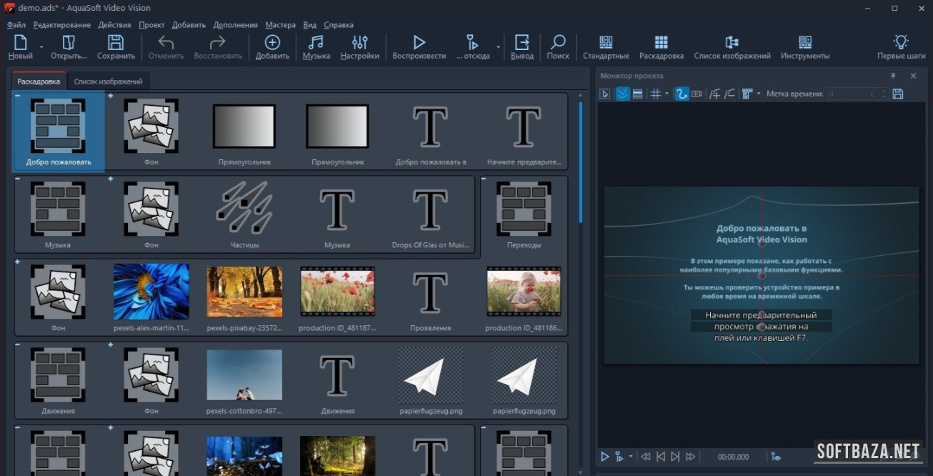 Интерфейс AquaSoft Video Vision — обзор рабочего пространства