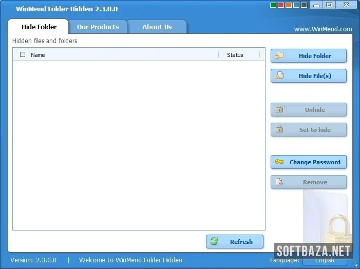 Интерфейс WinMend Folder Hidden — минималистичный и функциональный. Никаких лишних панелей, сложныхменю или перегруженных настроек. Программа создана для одной конкретной задачи и решает её максимальнопрямолинейно.
