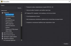 - Большие возможности по поиску: обычный, поиск с заменой, поиск регулярных выражений, обратный и пр.;