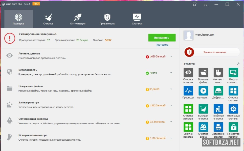Wise Care 365 Pro 7.3.3.720 + ключ (русская версия)