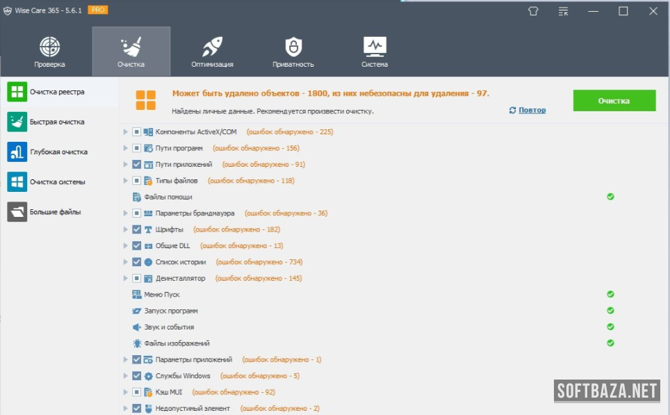 - Автоматическая или пошаговая очистка системных компонентов