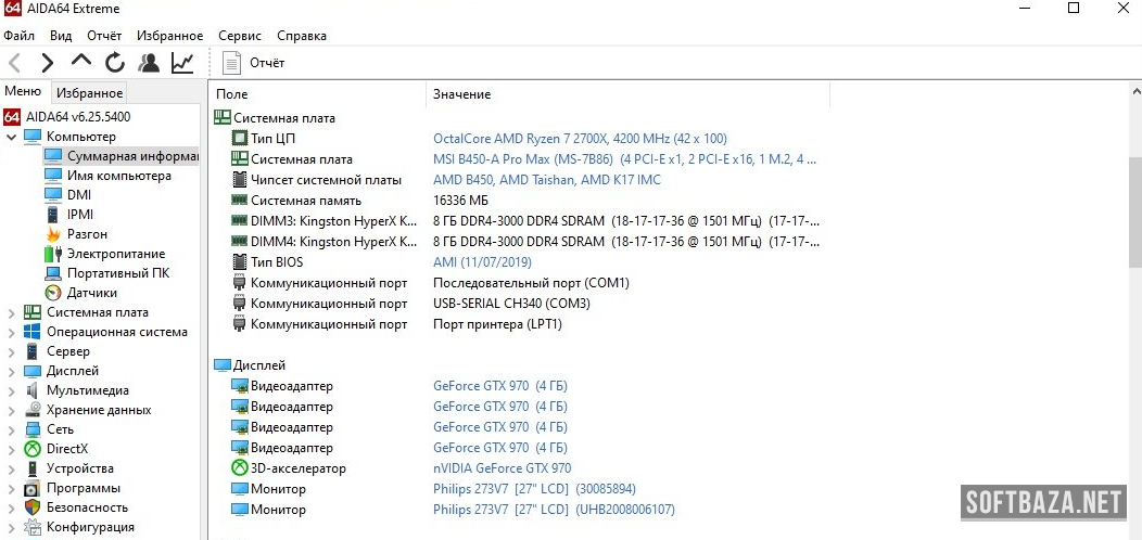 AIDA64 детализирует информацию о каждом компоненте системы: архитектуру и кэш процессора, чипсет и интерфейсы материнской платы, тайминги и частоту оперативной памяти, техническое состояние накопителей, характеристики графической подсистемы. Программа идентифицирует оборудование с точностью до конкретной ревизии и производителя.