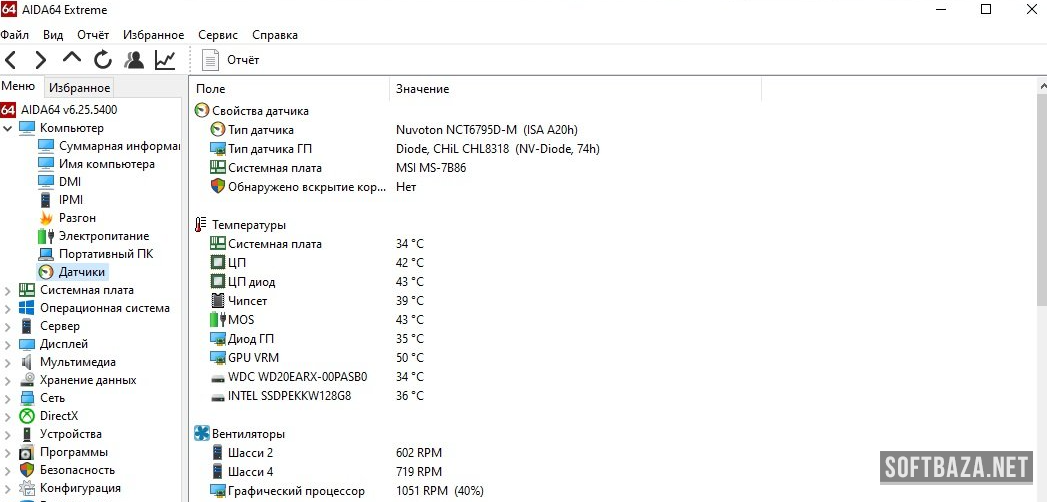 Программа отслеживает показатели более 250 датчиков, предоставляя точные данные о температуре процессора и видеокарты, напряжении на линиях питания, скорости вращения вентиляторов, загрузке компонентов и потребляемой мощности. Это позволяет оперативно выявлять перегрев, недостаточное охлаждение или проблемы с энергоснабжением.