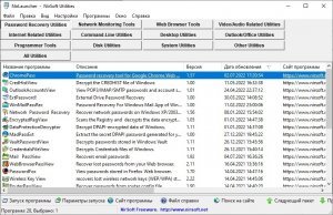 NirLauncher - это набор утилит, приложений и программных инструментов для настройки, мониторинга различных компонентов операционной системы и аппаратного обеспечения компьютера. Всего в NirLauncher Package входит более двухсот программ различной направленности. И поэтому сразу предупреждаем, различные антивирусные решения могут выдавать предупреждения о потенциальной угрозе, например из-за утилит по восстановлению пароля.NirLauncher Portable не требует установки на компьютер и запускается в портативном виде. Графический интерфейс выполнен в виде системного окна и имеет частичный перевод на русский язык. Основные категории утилит, которые располагаются в верхней части окна, остались на английском. Перейдя в любую из категорий, в главном разделе окна вы увидите перечень всех доступных утилит и инструментов с кратким описанием их функций.
