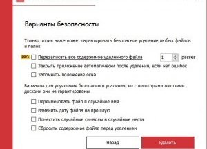 - Используются специальные алгоритмы безопасности, которые осуществляют удаление файлов и папок без малейшего следа;