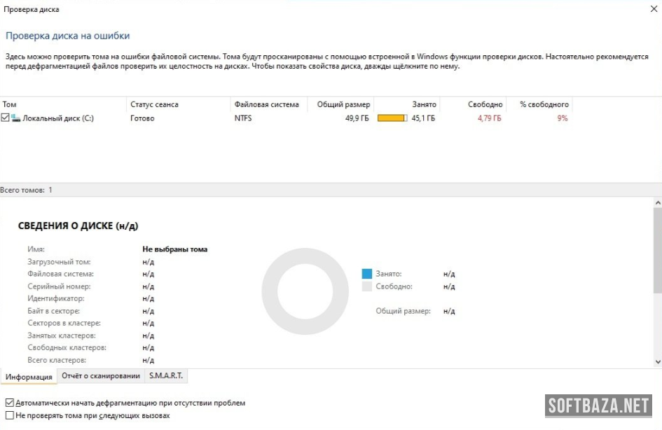 - Встроенный диагностический модуль проверки диска на системные ошибки