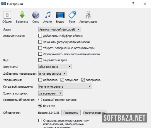 Реализована поддержка автоматической конвертации формата финального видеофайла после завершения загрузки. Трансформация выполняется в автоматическом режиме — достаточно выбрать требуемый формат и разрешение ролика в параметрах конфигурации. Важно отметить возможность параллельной загрузки нескольких видеофайлов одновременно, скачивания целых плейлистов и раздельного сохранения аудиодорожки от видеоряда.