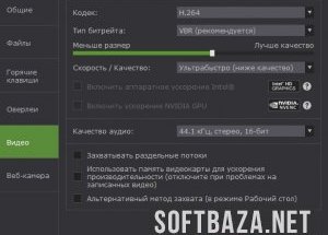 - Быстрый доступ к настройкам оверлея, веб-камеры и микрофона;