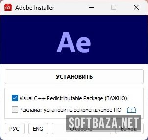 - Появится окно "Adobe Installer", в нем обязательно снимите галочку с "Реклама". Также установите галочку на "Visual C++", если давно не обновляли библиотеки Microsoft Visual;